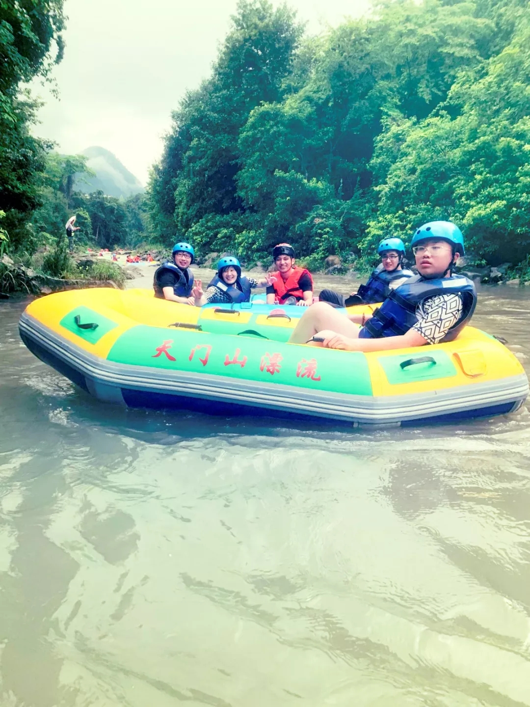 到了漂流码头,大家迫不及待更换漂流服,两人一组,开始漂流探险之旅。